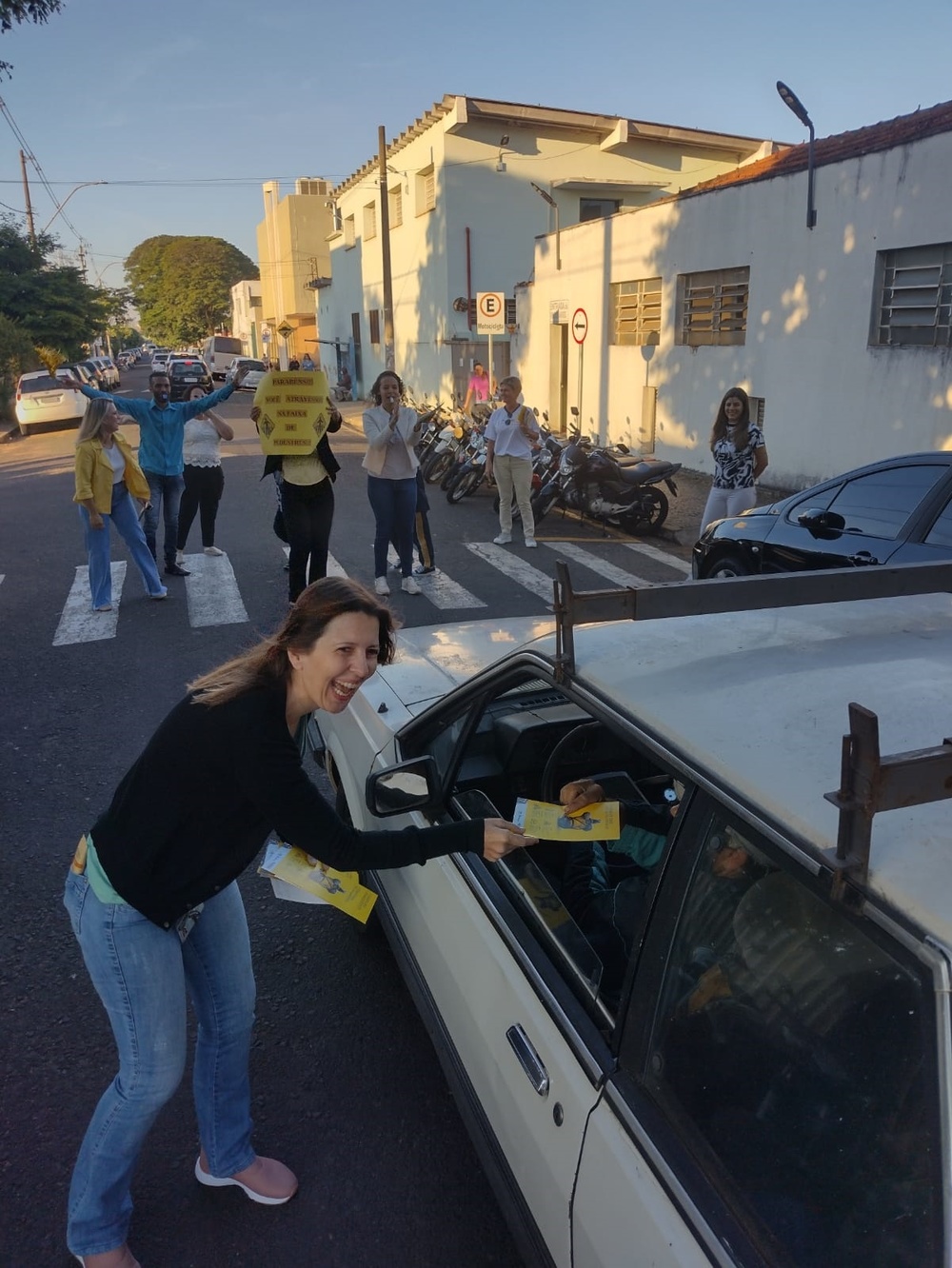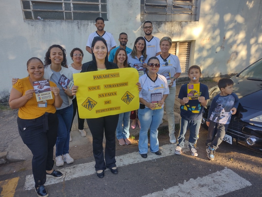 Em parceria com a Emdurb (Empresa Municipal de Mobilidade Urbana), a Santa Casa de Marília realizou ação para conscientizar motoristas a respeitarem a faixa de pedestres. Com cartazes e apitos, voluntários da campanha Maio Amarelo se manifestavam a cada veículo que parava na sinalização de solo existente próximo à entrada de funcionários do prédio do hospital, na rua 21 de Abril.