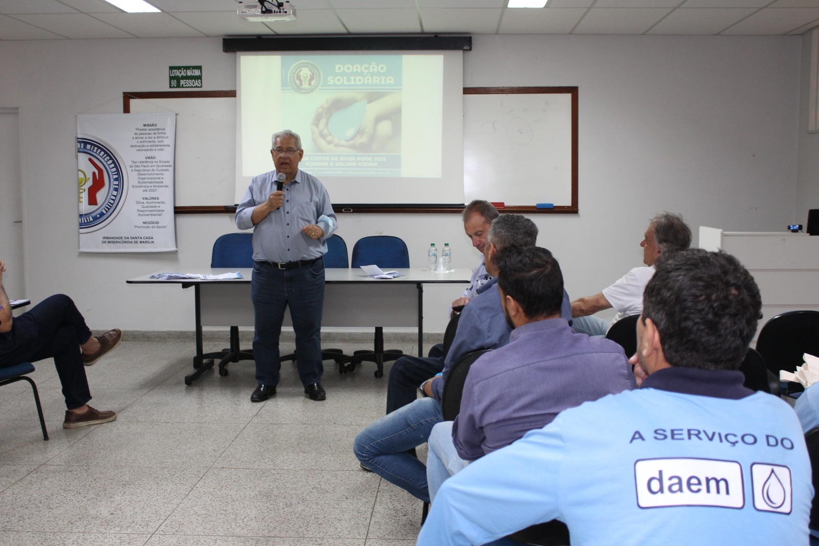 O coordenador do serviço de leitura de hidrômetros, Luiz Sérgio dos Santos, acompanhou os leituristas no encontro promovido no salão de reuniões da Santa Casa de Marília e mencionou a importância de entregar junto com as contas de água o informativo sobre a campanha Doação Solidária, da qual o hospital participa para angariar recursos necessários para manutenção e promoção de investimentos, tendo em vista o déficit trazido constantemente por conta da falta de correção da tabela do SUS.