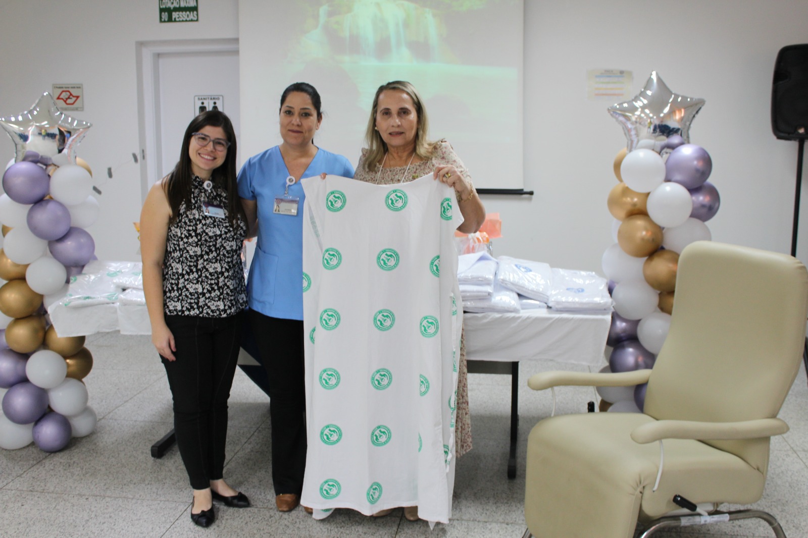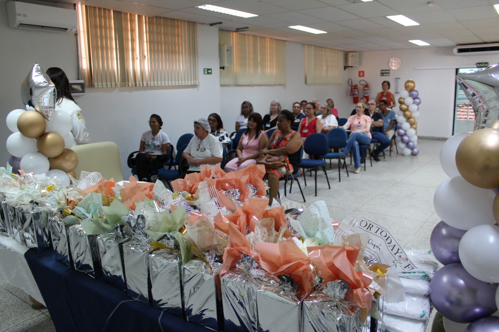 A profissional do setor de Hemodiálise, Rosemeire Aparecida Raphael, de forma voluntária, foi a responsável pela decoração do salão de reuniões da Santa Casa de Marília nesta ocasião especial em que foi celebrado o Dia do Idoso, com direito a salgadinhos, bolo confeitado, suco e café.