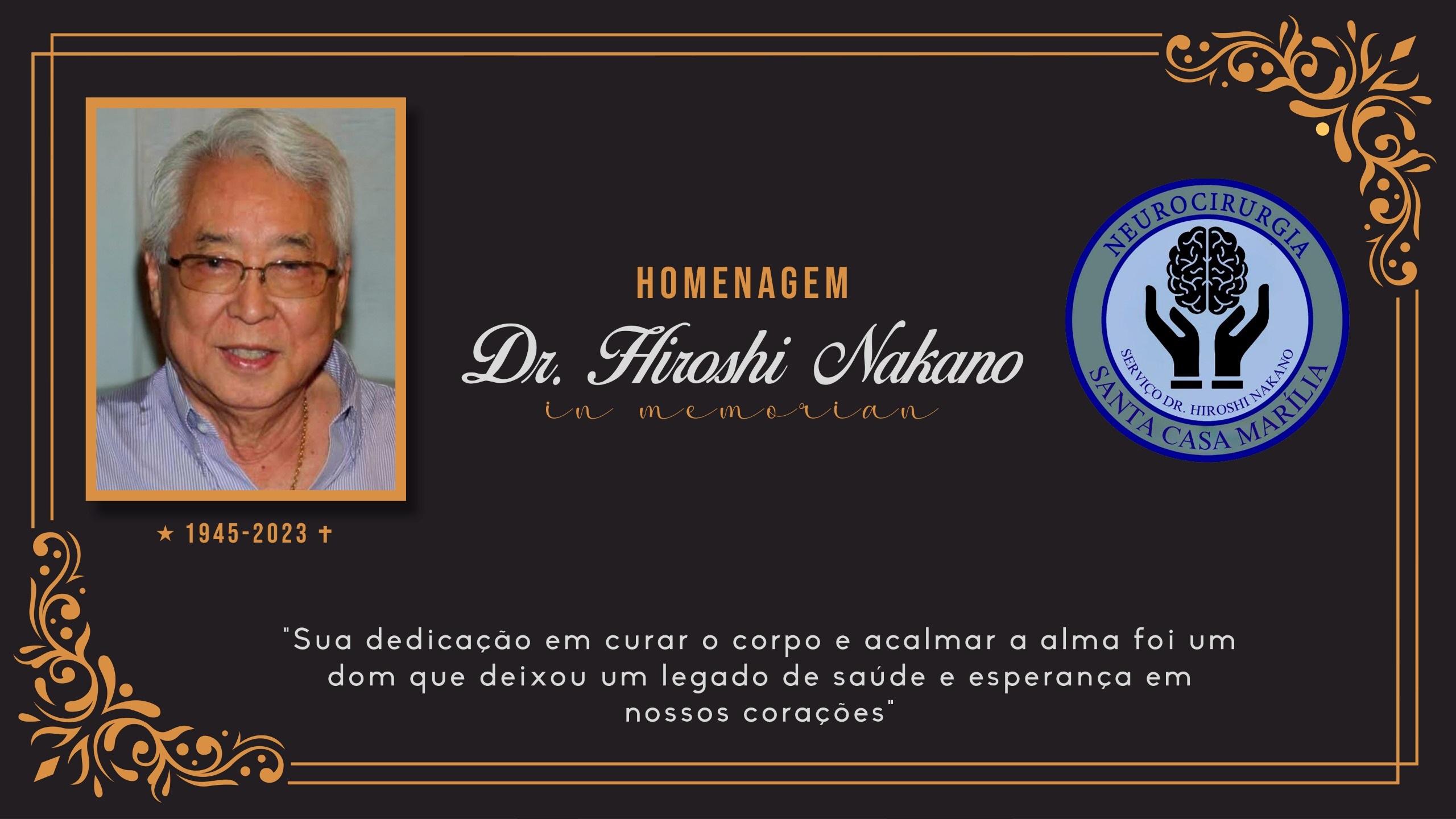 Em cerimônia realizada na manhã deste dia 10 de outubro, homenagem ao neurocirurgião Hiroshi Nakano (in memoriam) foi prestada, com a denominação do Serviço de Neurocirurgia da Santa Casa de Marília. Familiares e amigos do médico marcaram presença no evento, que aconteceu no salão de reuniões da instituição.