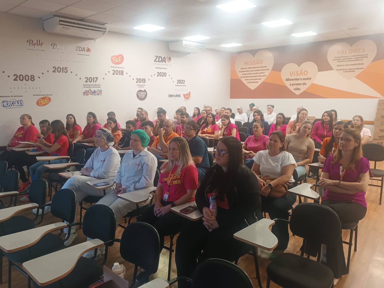 As enfermeiras da Santa Casa de Marília Natália Yanasse e Luiza Pereira ministraram palestras com o tema “A importância do autoexame na detecção precoce do câncer de mama”, neste dia 30 de outubro, na ZD Alimentos. No período da manhã, as atividades aconteceram na unidade de Herculândia da empresa e de tarde, as colaboradoras que atuam no Distrito Industrial de Marília acompanharam as explanações das profissionais da saúde.