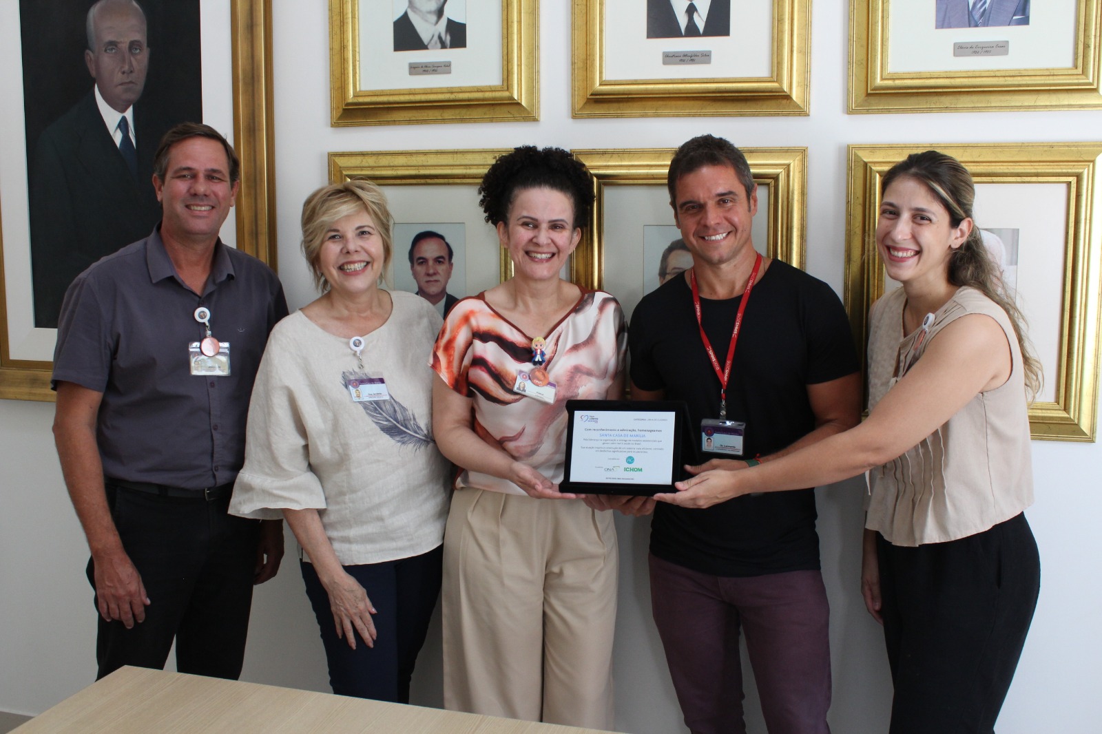 Já em Marília, o troféu foi compartilhado com a equipe multiprofissional, representada pelo diretor administrativo da instituição, João Luís Castro Vellucci; pelo coordenador da Cardiologia, Leonardo Maróstica; e pelas enfermeiras Eliane Nobre (Cardiologia Clínica) e Gabriela Teruel (DRG). O reconhecimento simboliza o trabalho integrado que sustenta os resultados da instituição, não apenas nas áreas de Medicina e Enfermagem, mas também em setores essenciais como Serviço Social, Fonoaudiologia, Fisioterapia, Farmácia Clínica, Nutrição e Psicologia.