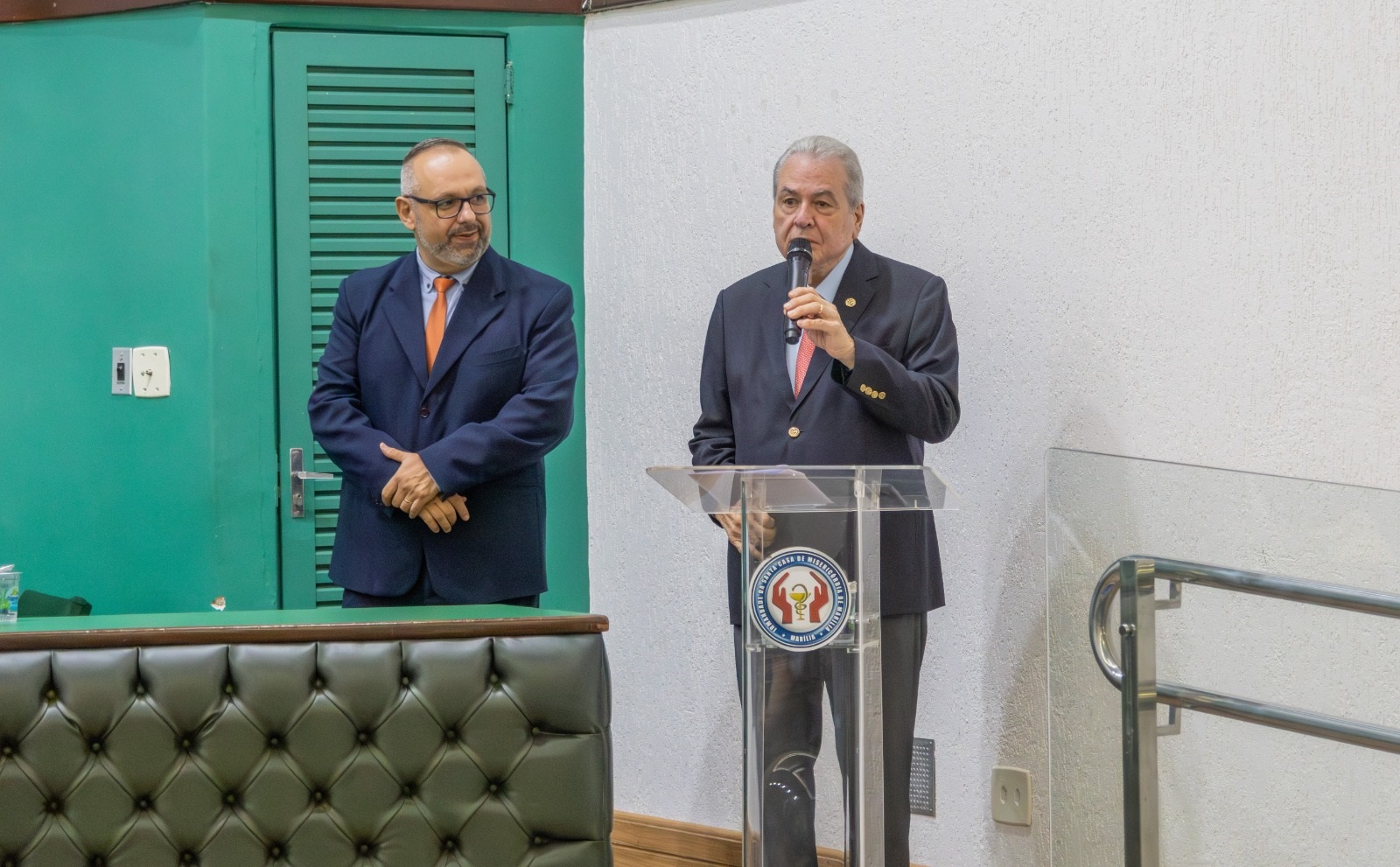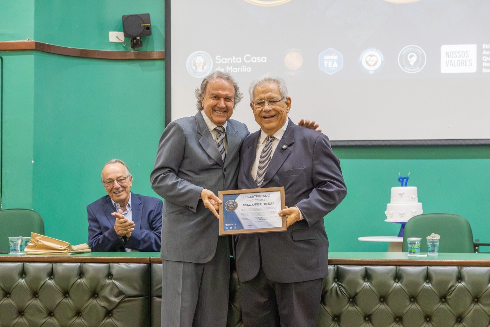 O atual provedor Norival Carneiro Rodrigues recebe o certificado de "Irmão Amigo" do primeiro vice-provedor Luiz Antônio Orlando