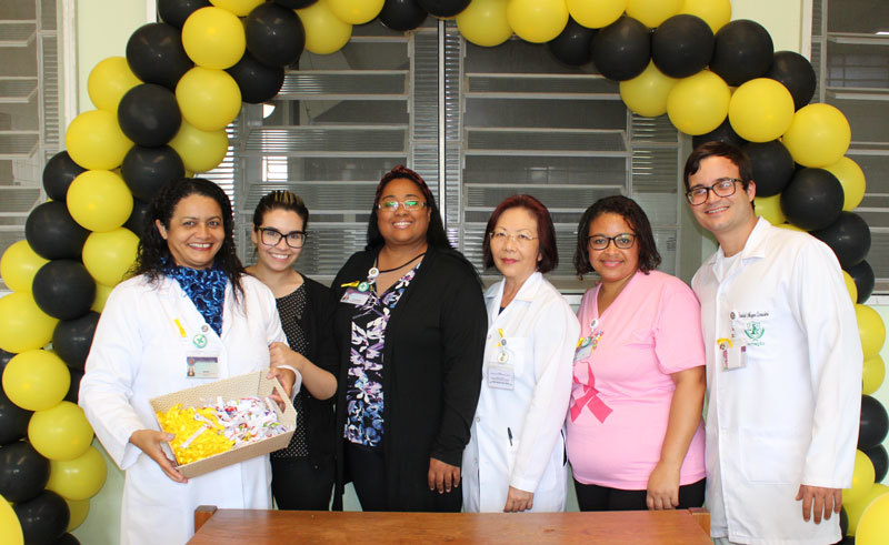 Pedágio do Setembro Amarelo também está sendo realizado nas proximidades do relógio de ponto do hospital. Fitas amarelas e balas com mensagens de apoio estão sendo entregues aos colaboradores da Santa Casa de Marília.