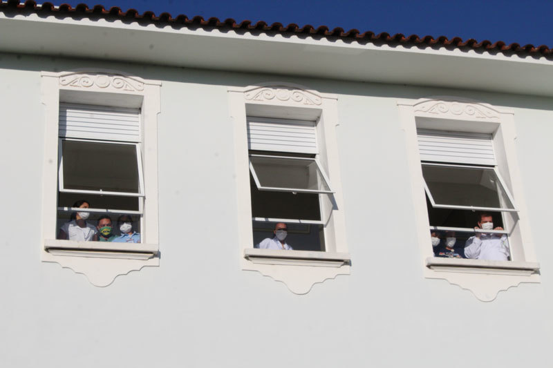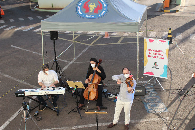 O Trio Détaché fez apresentação em homenagem aos profissionais da saúde e ao Dia das Mães, na tarde deste sábado (8 de maio), no estacionamento da Santa Casa de Marília. Os profissionais da saúde acompanharam o show das janelas da unidade hospitalar.