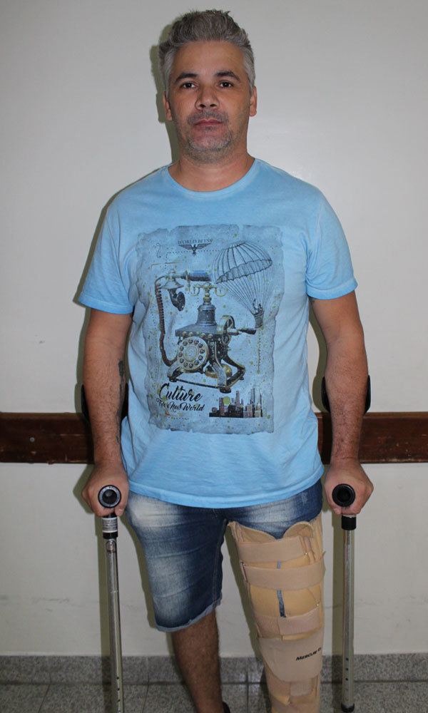 O açougueiro Rodrigo Aparecido de Jesus Ribeiro, de 39 anos, é morador de Cândido Mota e passou por várias cirurgias após sofrer acidente de moto. “Com o impacto, o meu joelho ficou fragmentado. Sou muito bem atendido na Santa Casa e tudo pelo SUS. Passei por uma cirurgia no dia 30 de novembro do ano passado e fiquei internado 17 dias. No último dia 23 de janeiro, fui submetido a outro procedimento cirúrgico, desta vez no tendão e na tíbia. Correu tudo bem, graças a Deus. Estou em plena recuperação”.